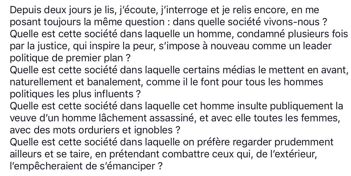 “ »Quelle est cette société dans laquelle un homme condamné plusieurs fois par la justice, qui inspire la peur, s’impose à nouveau comme un leader politique de premier plan ? »”